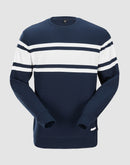 Design Features Basic round neck pullover with splicing stripes, providing a modern and stylish look.