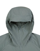 High collar design with UV protection and adjustable fit system.